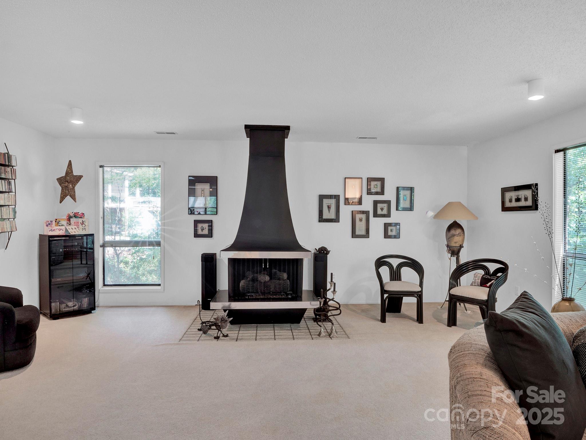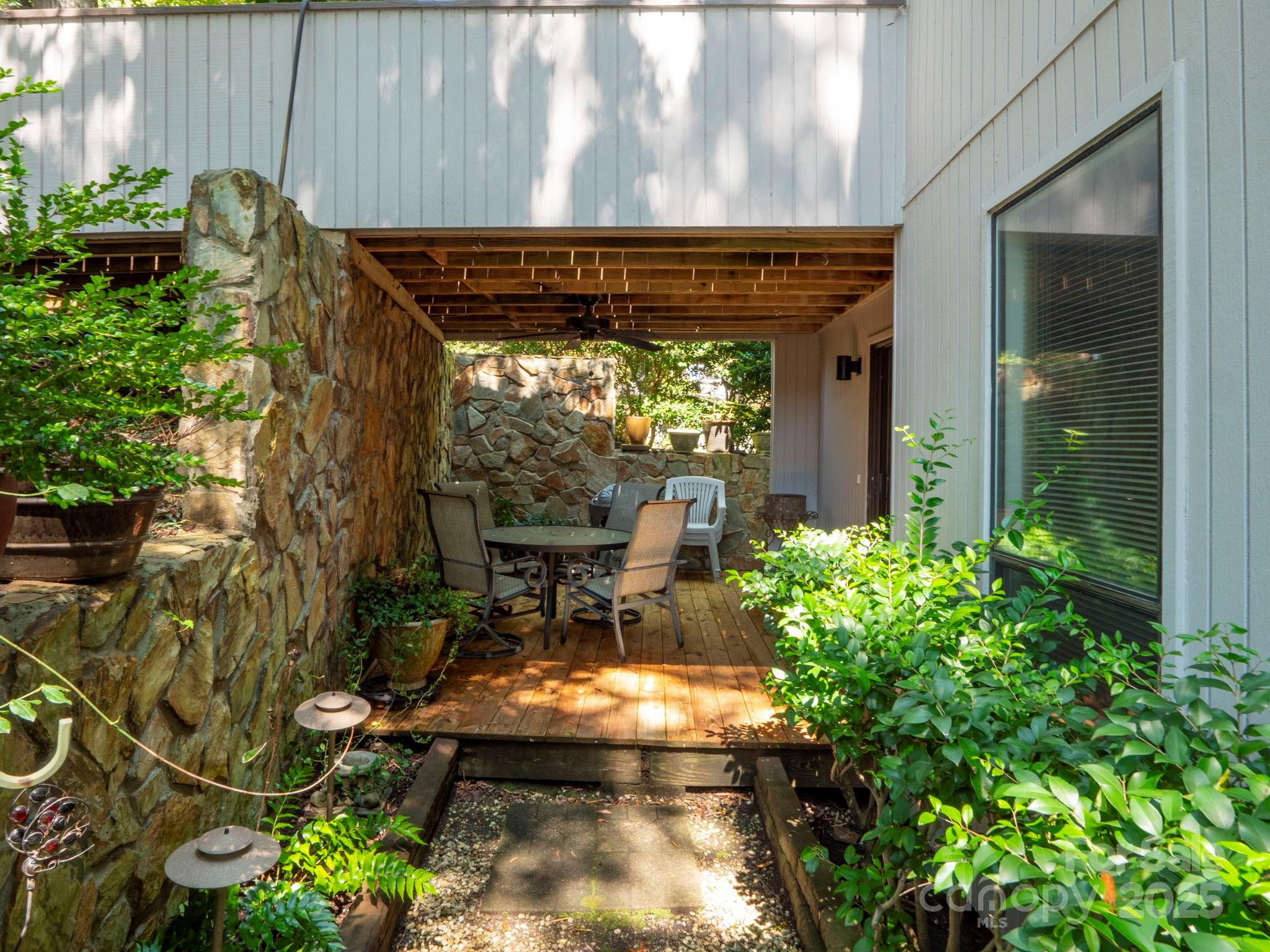 The primary suite offers serene views of the sunrise through the trees, while the large gathering room with fireplace is perfect for entertaining or relaxing evenings at home. A cozy den provides the ideal setting for movie nights, and the lower-level deck, affectionately called “Our Secret Garden,” offers a private escape for quiet reflection or outdoor entertaining.